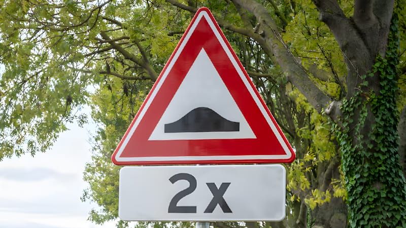 Verkeersbord waarschuwing snelheidsdrempel