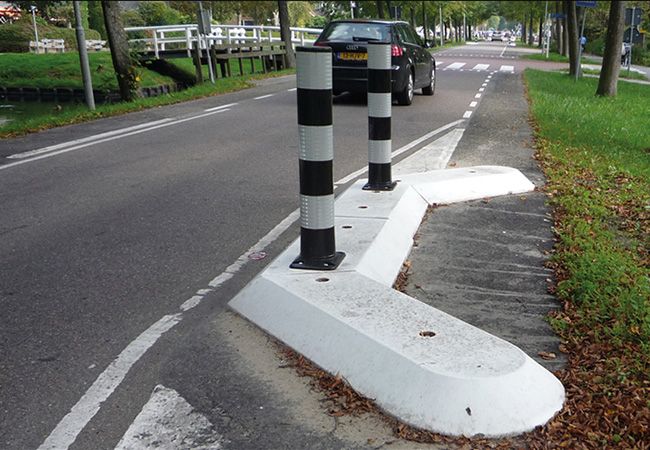 - Demontabele betonelementen kunnen worden gebruikt als wegversmalling. Doordat tegemoetkomend verkeer voorrang moet worden verleent, werkt deze maatregel snelheid verminderend. De elementen zijn demontabel, handig bij onderhoud of evenementen.