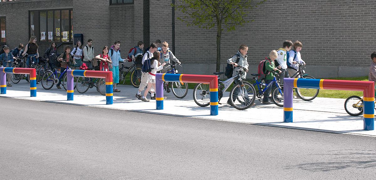 De afzetpalen kunnen in combinatie met Julie© beugels gebruikt worden en voorkomen dan wild parkeren nog beter. Bovendien bakenen Julie© beugels heel duidelijk het gebied af waar voetgangers en auto’s zich mogen bevinden. Daardoor worden kinderen nog beter beschermd. Met de Julie© beugels kan ook een sluis gecreëerd worden waardoor kinderen geremd worden om rechtdoor de straat over te steken en zo worden gevaarlijke situaties voorkomen.