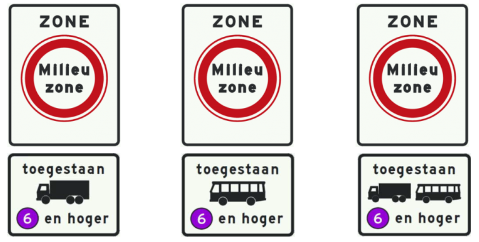 - Paarse milieuzone: Dit geldt voor vrachtauto’s en bussen. Alleen dieselvoertuigen met minimaal emissieklasse 6 mogen hier rijden.