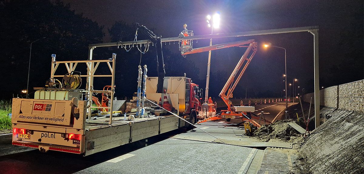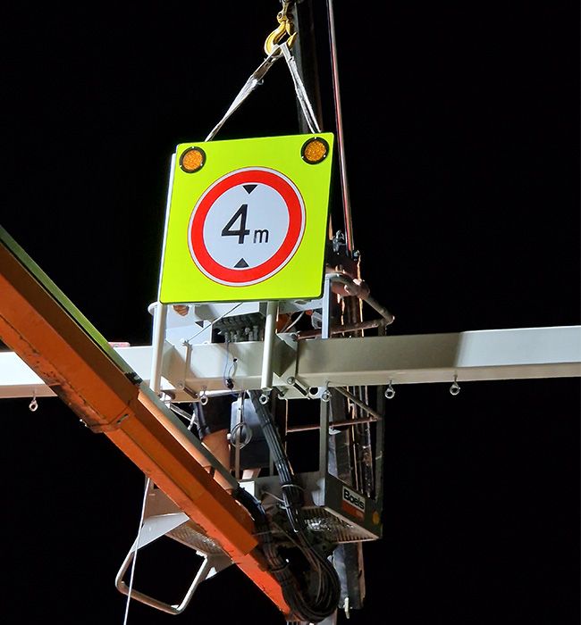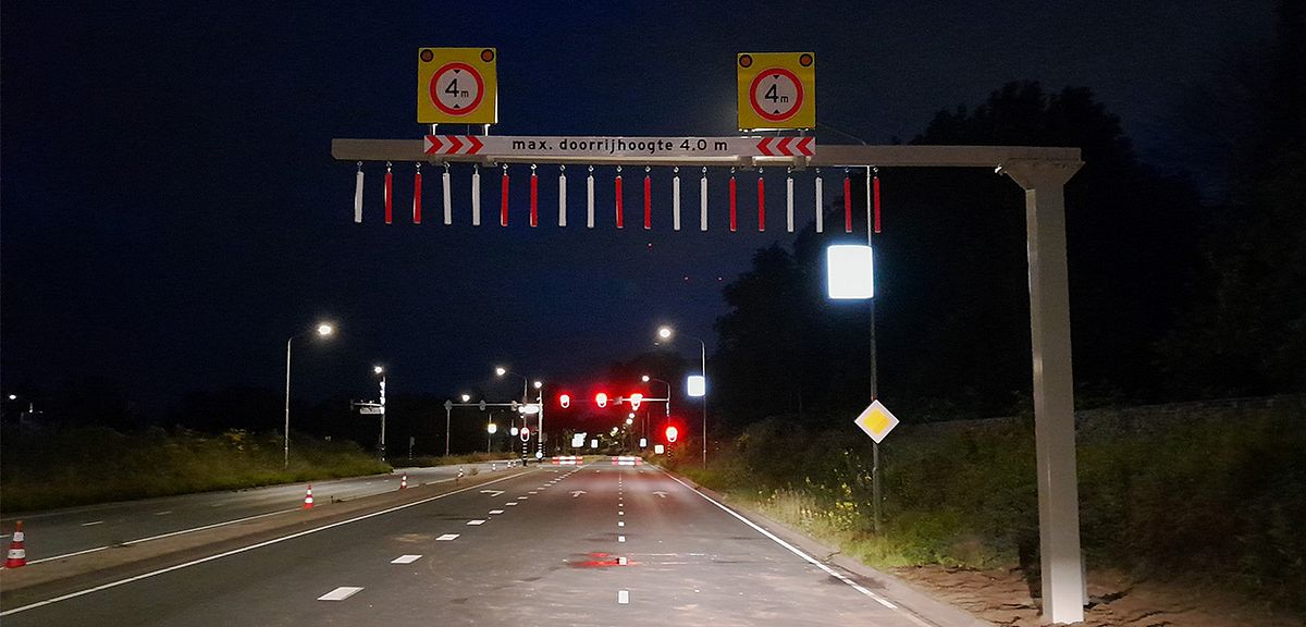 Doorrijhoogteportalen met LED-attentieborden en kokers