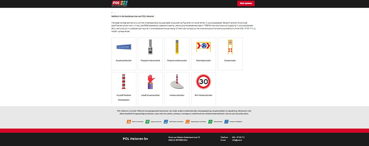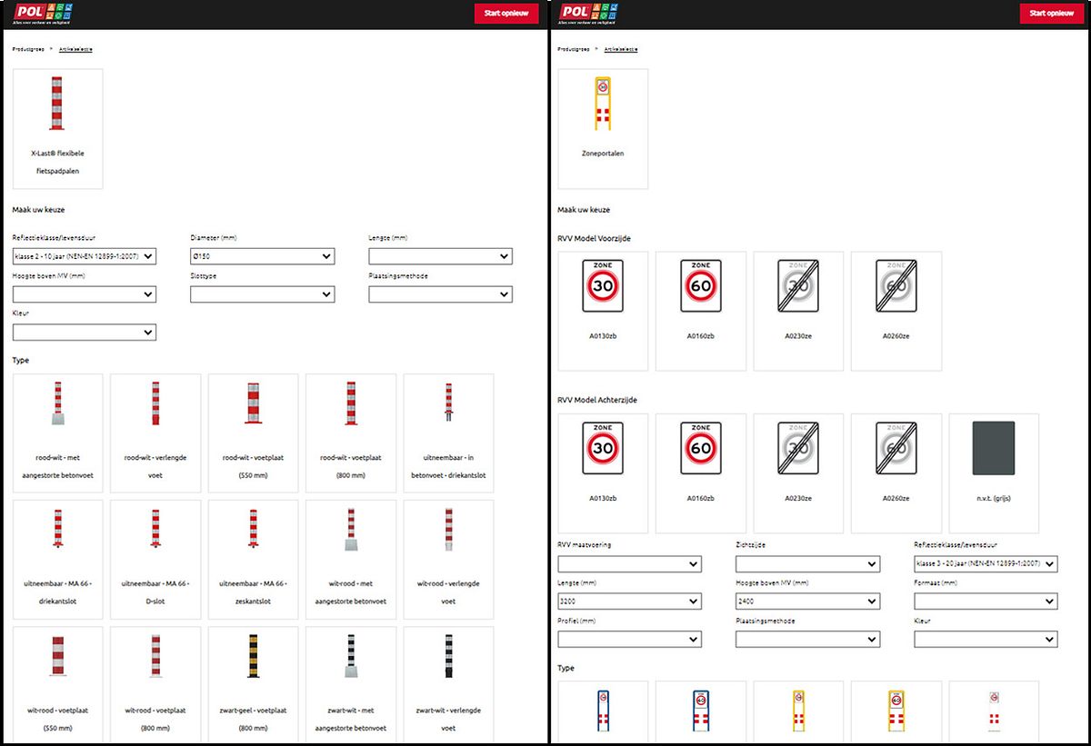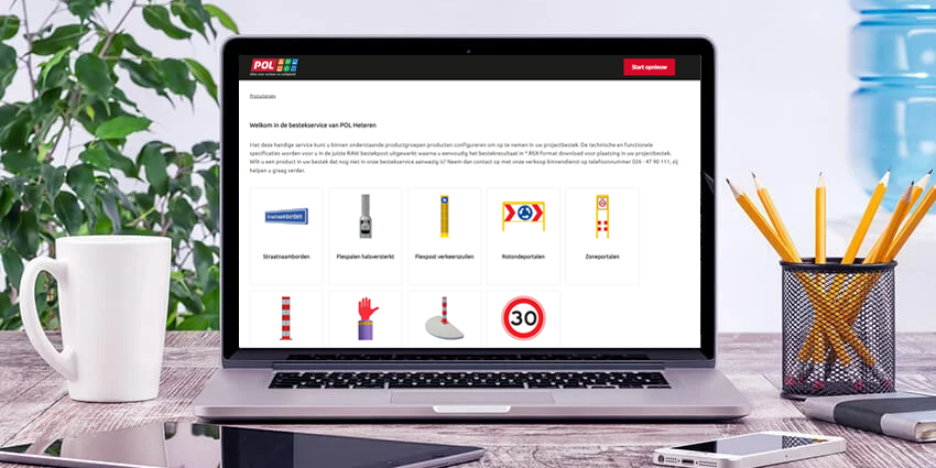Via bestek.pol.nl kan een RAW bestekpost worden geconfigureerd voor straatnaamborden, flespalen, flexpost verkeerszuilen, rotondeportalen, zoneportalen, fietspaden, Julie straatmeubilair, verkeerseilanden en RVV verkeersborden.