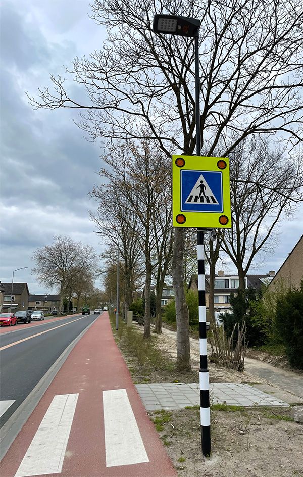 - De knipperborden attenderen de automobilist al op afstand dat deze een oversteekplaats nadert die wordt gebruikt. Er kan tijdig worden afgeremd!