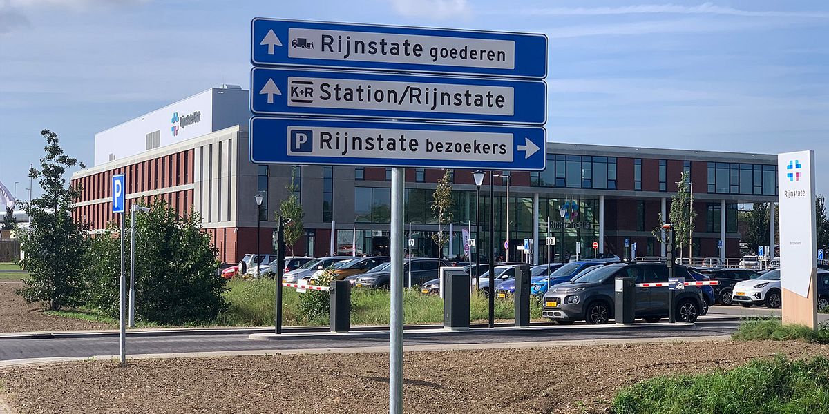 Naast verwijsborden zijn ook parkeerborden en laadplaatsborden geplaatst op het parkeerterrein van Rijnstate ziekenhuis Elst