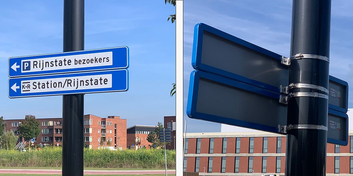 Om het verkeer rond het nieuwe ziekenhuis Rijnstate Elst in goede banen te leiden hebben we dertig verwijsborden mogen leveren. Het plaatsen van deze bewegwijzering is ook aan ons uitbesteed. Het nieuw aangelegde ziekenhuisterrein grenst aan het stationsgebied van Elst. Zo zijn er de nodige nieuwe verbindingen ontstaan. De verwijsborden geven aan waar bezoekers kunnen parkeren, waar leveranciers hun goederen kunnen lossen en waar de Kiss & Ride zone zich bevindt. Daarnaast zijn de verwijzing naar het station en de route voor doorgaand verkeer aangegeven.