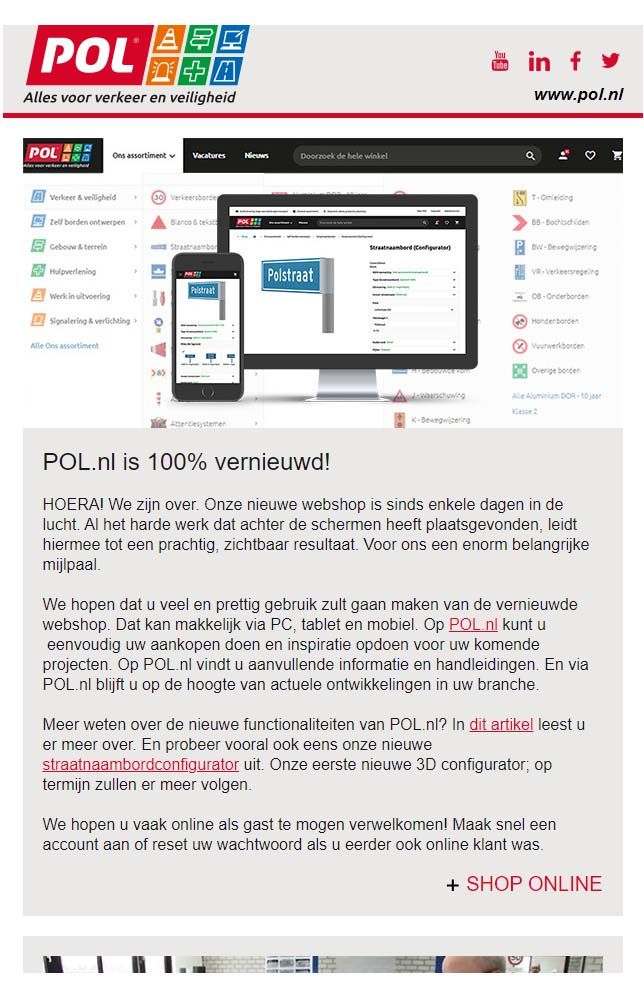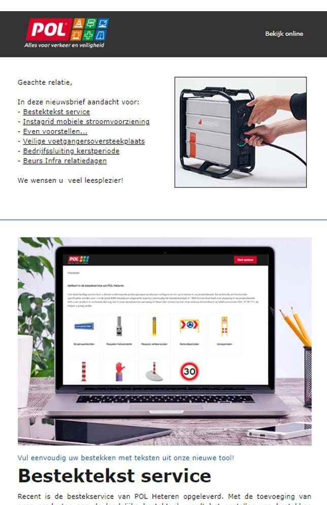 POL Heteren is continu in beweging. We volgen de marktontwikkelingen of creëren ze. Duurzaamheid? Vanzelfsprekend! Nieuwe regelgeving? Wij zijn op de hoogte. Ook ons assortiment is heel dynamisch. Van innovaties en nieuwe producten naar wijzigingen in uitvoeringen of specificaties. Daarnaast voeren we heel veel projecten uit en maken we veel maatwerkproducten.