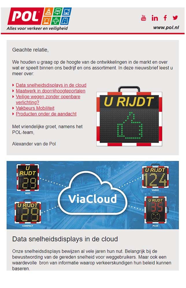 Om u van al deze ontwikkelen op de hoogte te houden, versturen wij een aantal keer per jaar een nieuwsbrief naar onze klanten en alle andere geïnteresseerden. Informatief en inspirerend.
