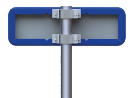 Voor montage bovenop een paal wordt een aluminium opzetbeugel gebruikt. De beugel wordt aan de binnenzijde met een stalen plaat gemonteerd, waardoor het bord vrijwel niet te verbuigen is.