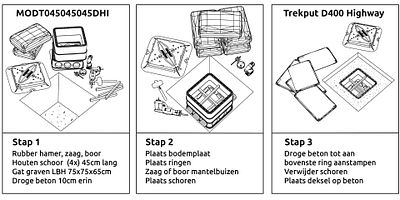 Een trekput bestaat uit losse ringen met een stapeldiepte van 155 mm. De hoogte is dus zelf te bepalen door het aantal ringen dat op elkaar gestapeld wordt. Voorkom dat je een smalle trekput te diep maakt. Kabels en leidingen zijn dan moeilijker bereikbaar.