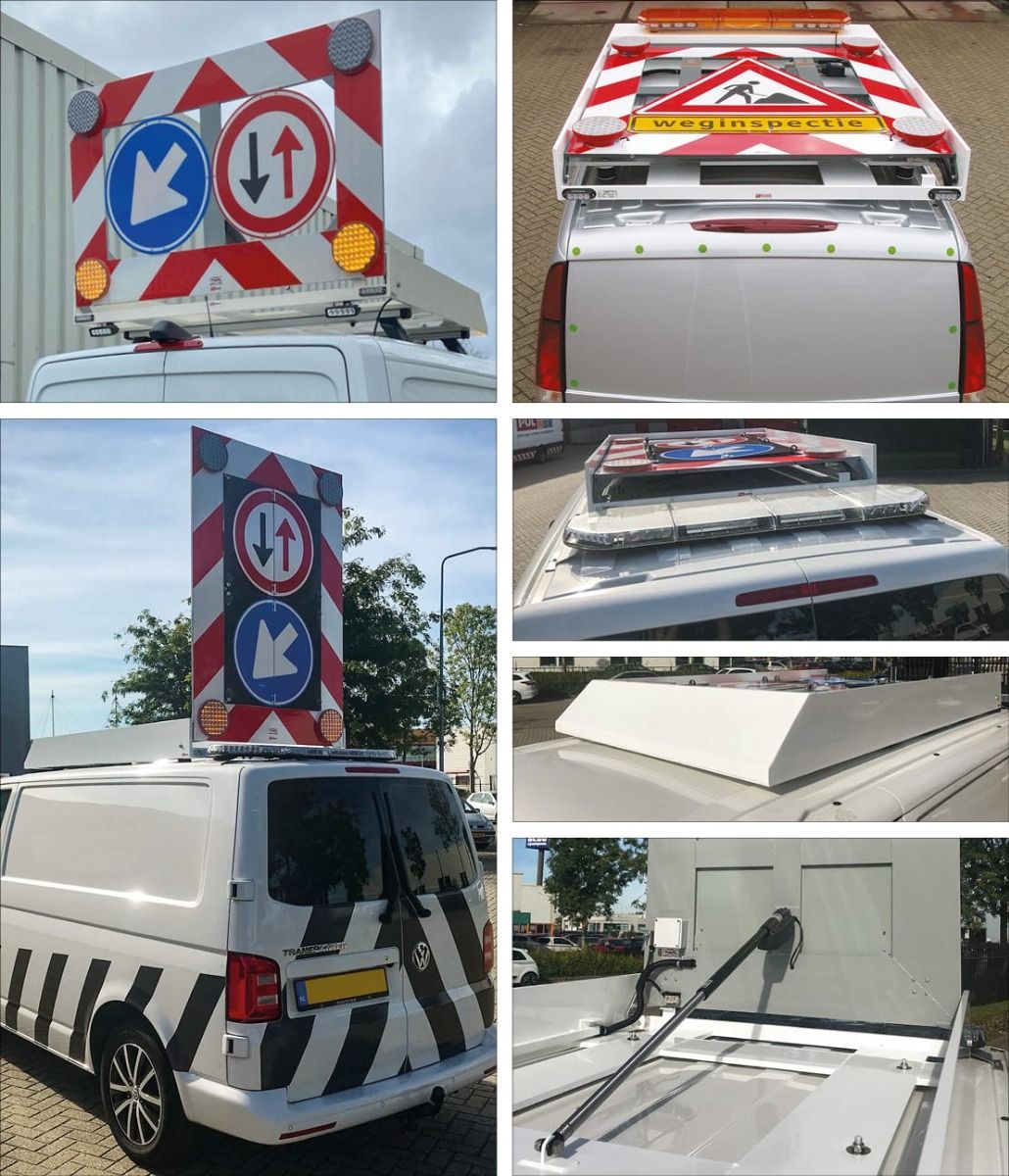 Onze Technische Dienst voert de assemblage volledig in eigen beheer uit, van het printen van de folie tot het aanleggen van de bedradingen. Ook montage op voertuigen en inbouwen van maatwerk elektronica, zoals een bedienings- en signaalunit of dakset, behoren tot de mogelijkheden.